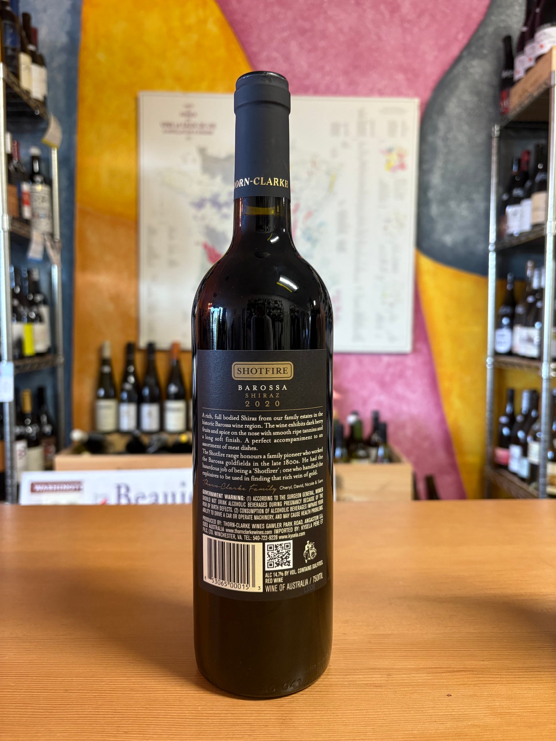 The Thorn family have grown vines in the Barossa since the 1870’s and still proudly own and manage some of the oldest vineyards in the region. The Shotfire line features outstanding parcels of 100% Barossa Valley fruit, selected from the Kabininge vineyard. These wines which then receive special oak maturation treatment in thier Barossa cellars.